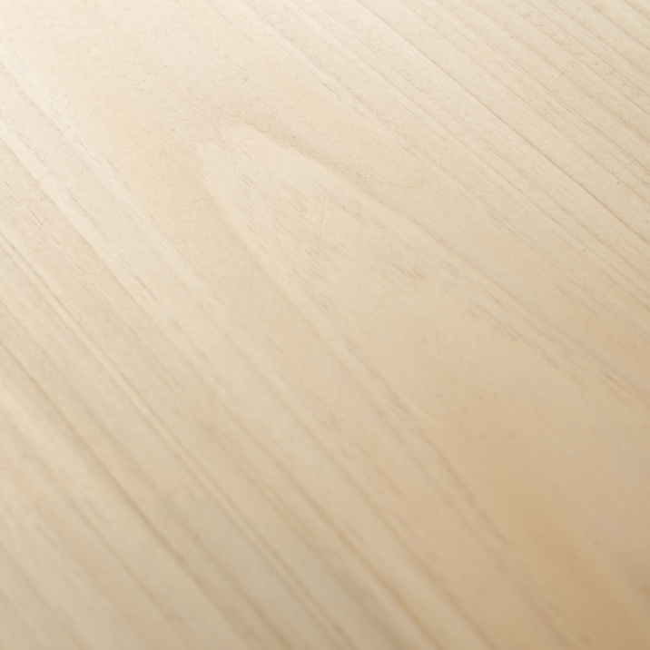 天板と脚板が同じ構成でデザインされたノックダウン可能なテーブル。山で取れた様々な幅の材料をそのまま使い、平板が製作されている。隣り合う板同士は板ハギという接着をせず、はしばみを介して並ぶようにし、乾燥や湿度による材の収縮/膨張を逃がす目地を2mm取っている。