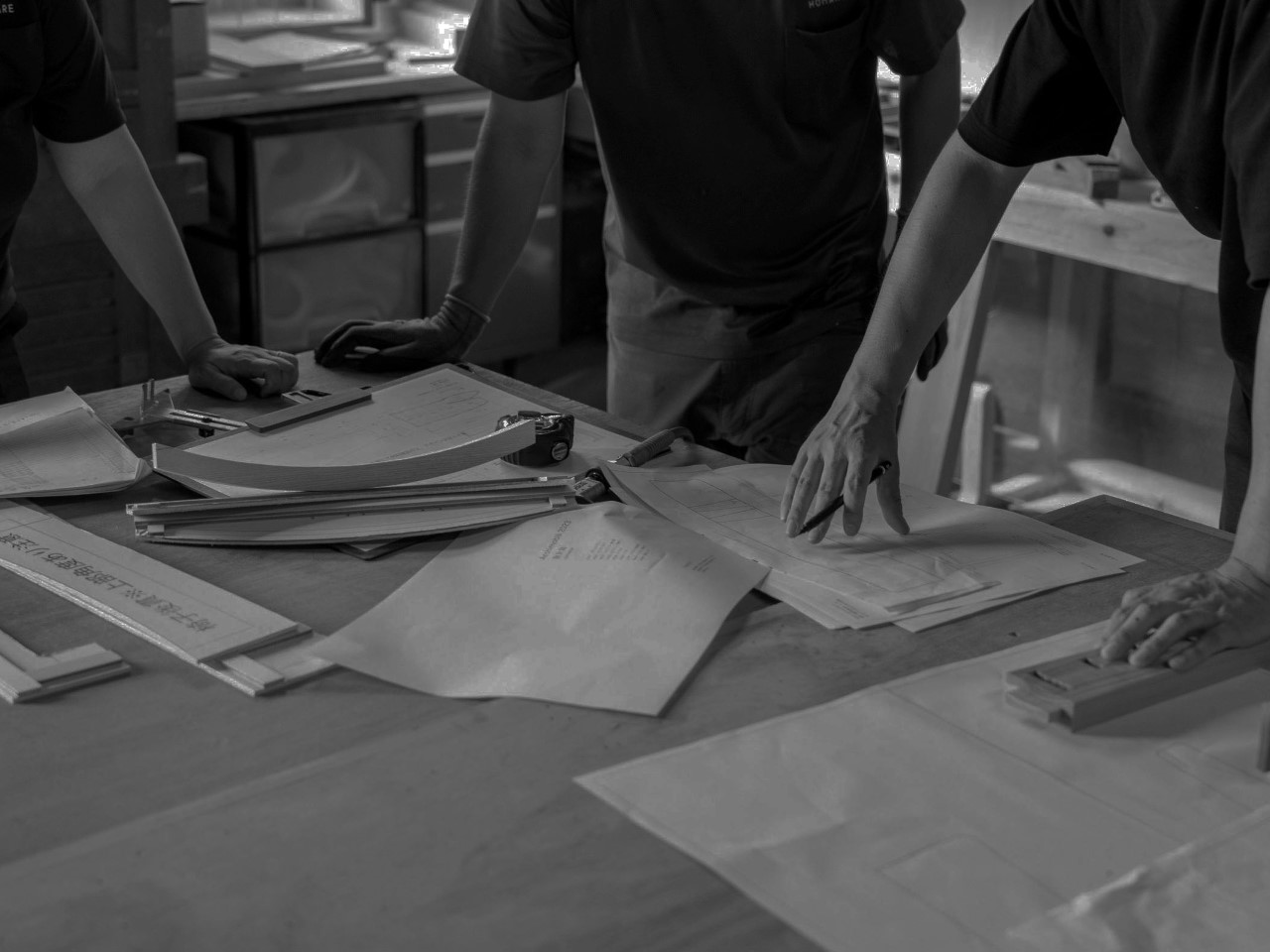 家づくりでの私たちの技術は、素材の個性を生かす家具づくりをする上で欠かせないものとなっています。