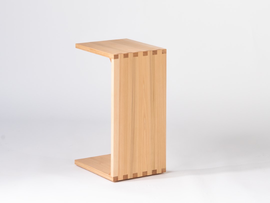 コの字型に構成されたサイドテーブル。ソファの脚下に入れるなど、他の家具と組み合わせて使うことを想定して設計されている。天板のキャンチレバーは、優れた技術と設計により強度を確保している。